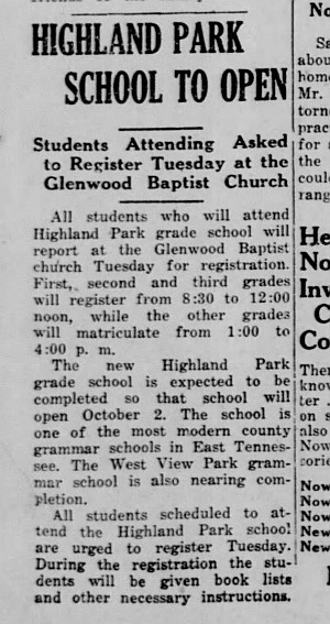 "...Dickson School PTA which was first held on November 17, in 1933, under the name of Highland Park Teachers Association. Mrs. R.L.Hawk was elected first president of this association.
